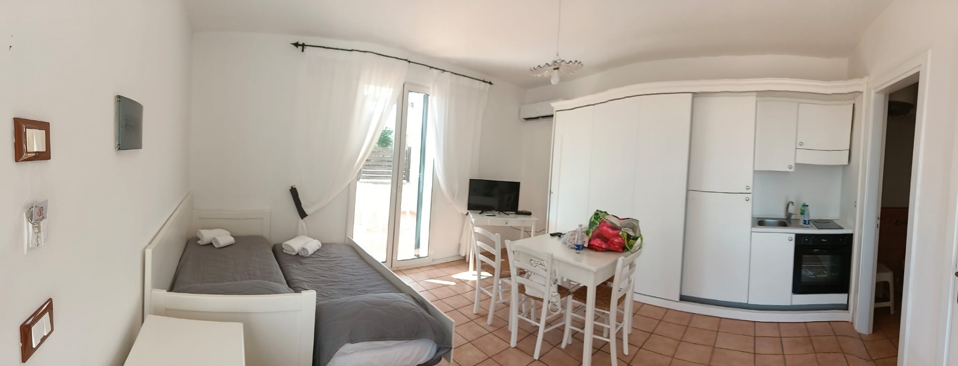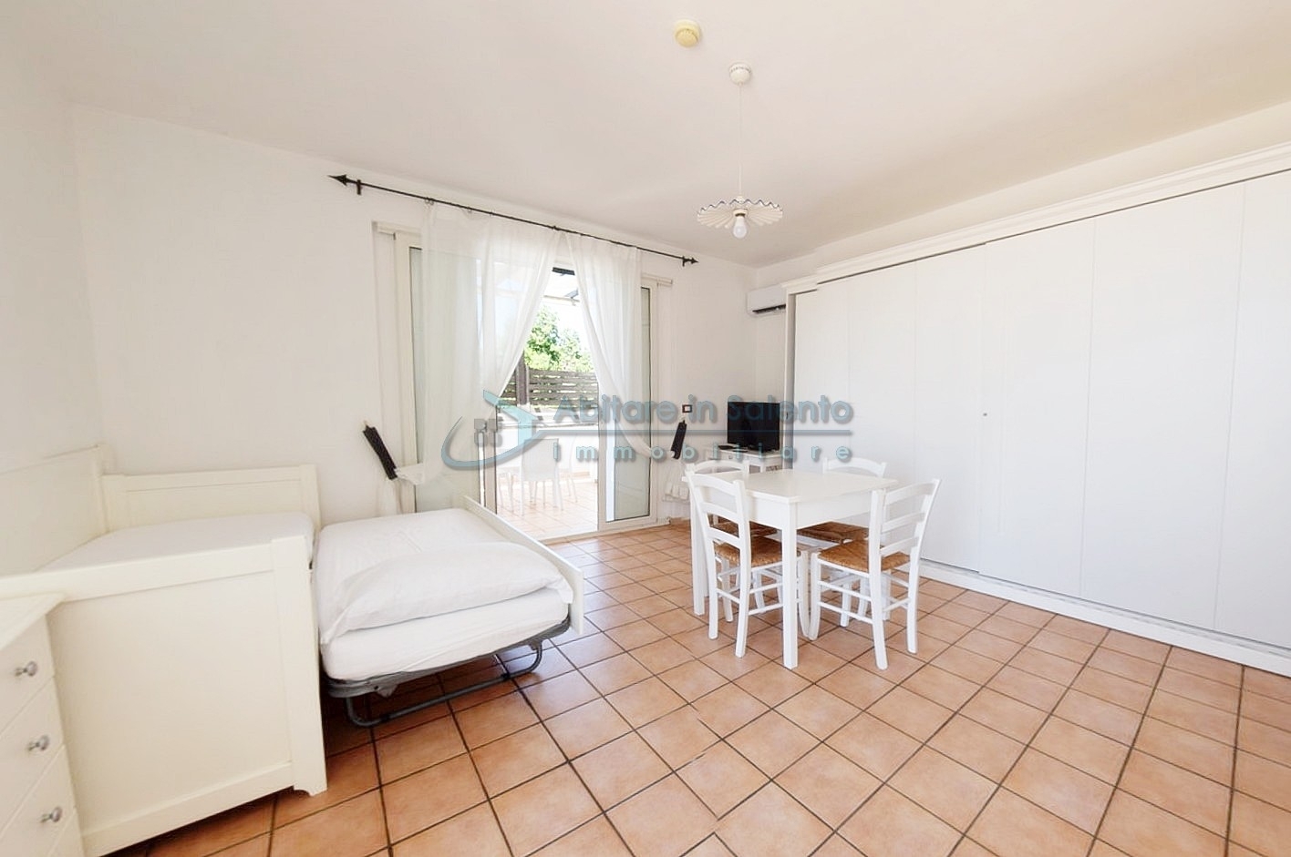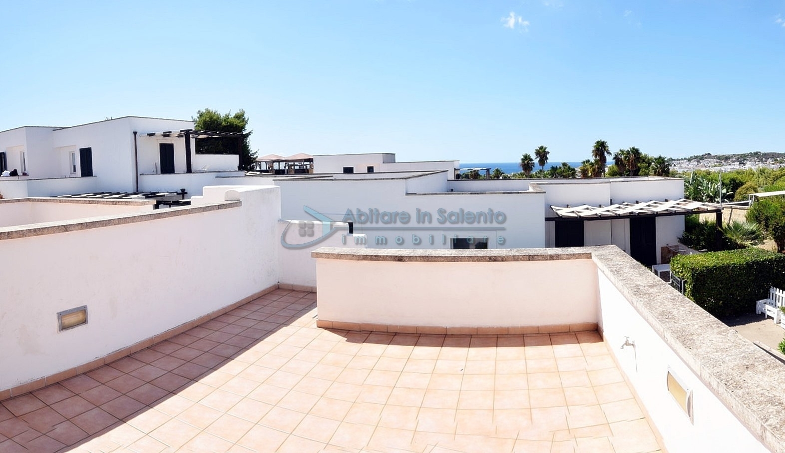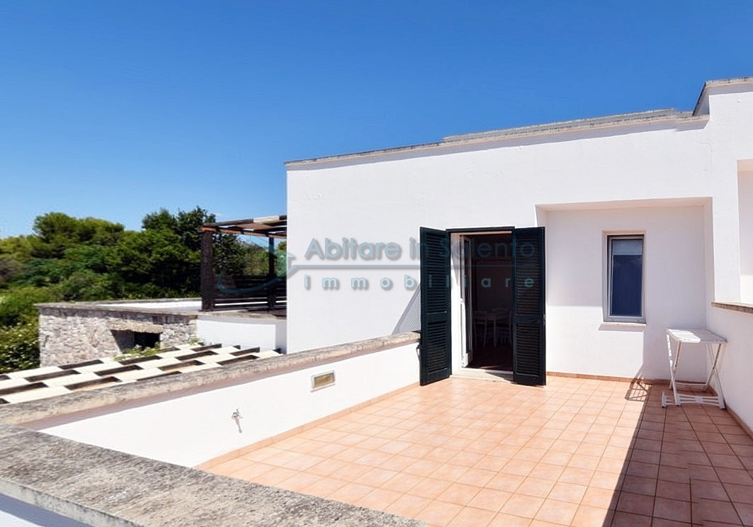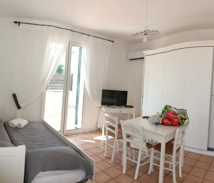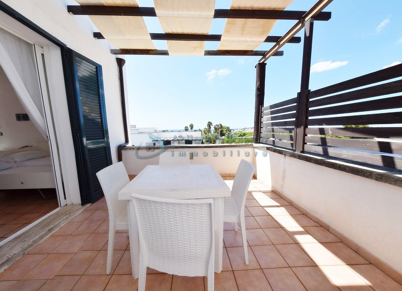 MARINA DI LEUCA - Nell'incantevole cornice di Santa Maria di Leuca, la perla del Salento, all'interno di un complesso alberghiero a 4 stelle con piscina d'acqua salata, centro benessere e ristoranti, strategicamente posizionato per offrire una vista mozzafiato sul mare a poche centinaia di metri dalla costa, proponiamo in vendita un accogliente bilocale ben arredato, dotato di tutti i comfort moderni (aria condizionata, zanzariere, ecc.), con arredamento recente, in regime di multiproprietà, con una superficie di circa 50 metri quadrati. Questa unità si trova al primo piano con ingresso indipendente da una scala esterna e si compone di un ampio terrazzo frontale con vista mare, una luminosa sala con angolo cottura e divano letto, TV e tavolo da pranzo, una camera da letto, un bagno e un accesso a una graziosa terrazza laterale anch'essa con vista mare e dotata di un patio coperto con tendoline, un tavolino e poltrone in rattan. Prezzo riferito alla 27ª settimana dell'anno solare (prima settimana di Luglio). Ottimo investimento!